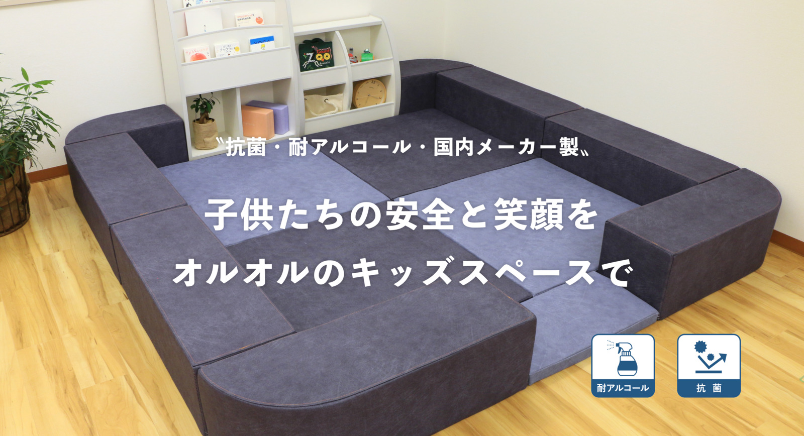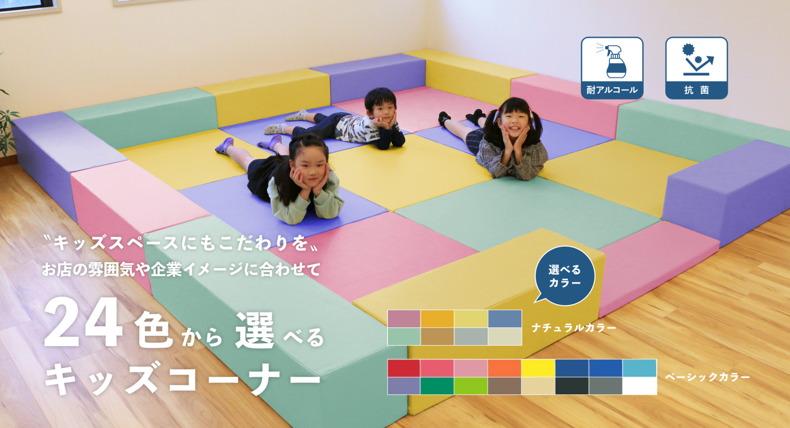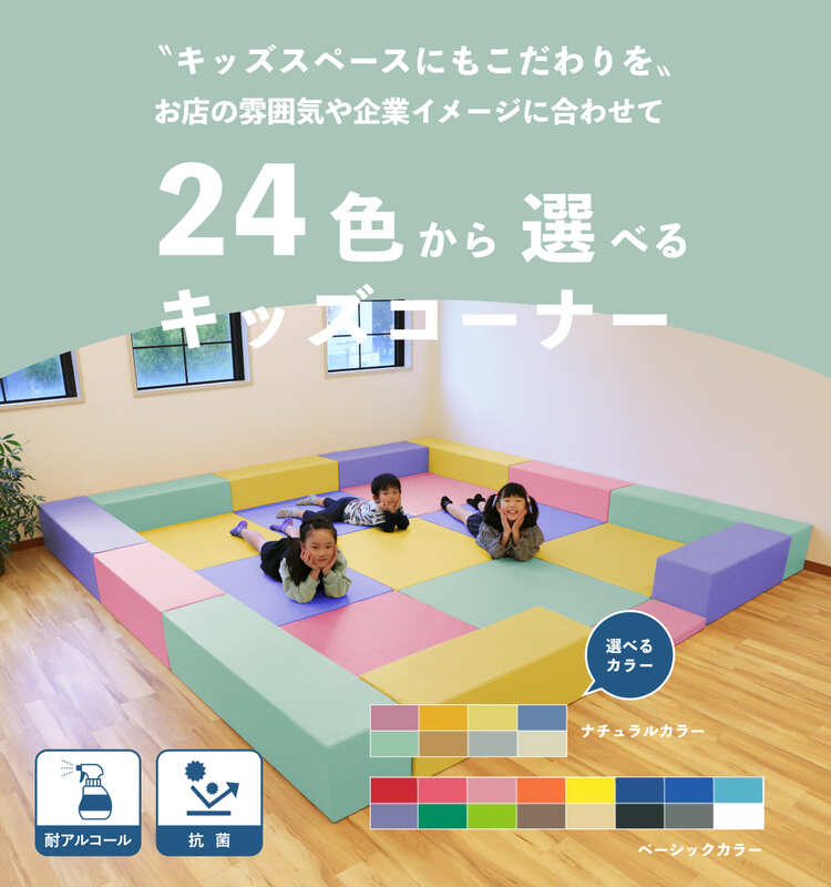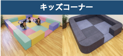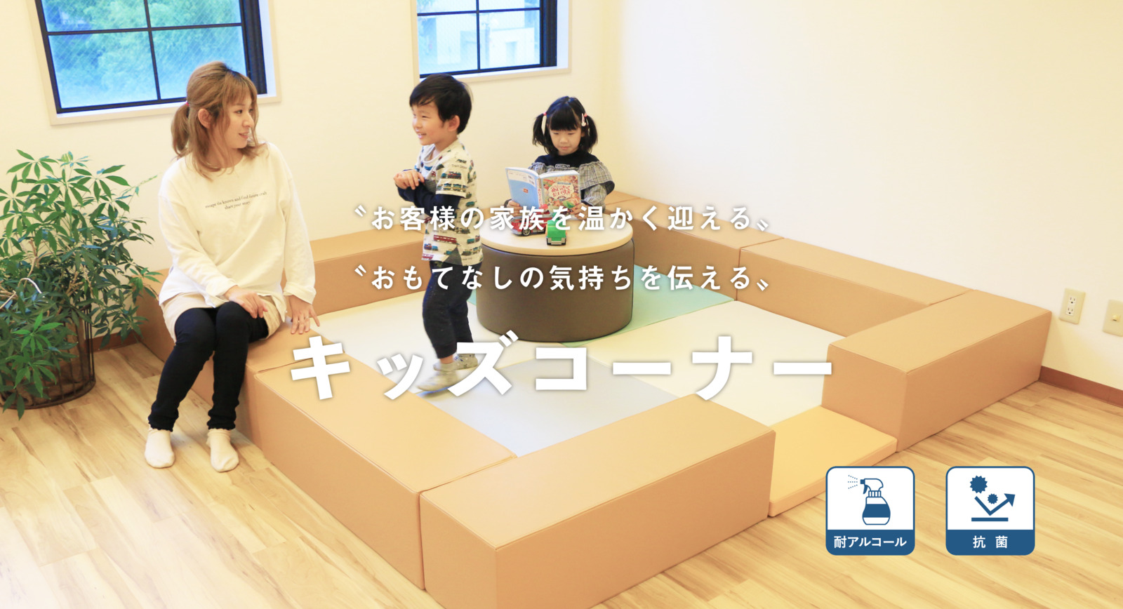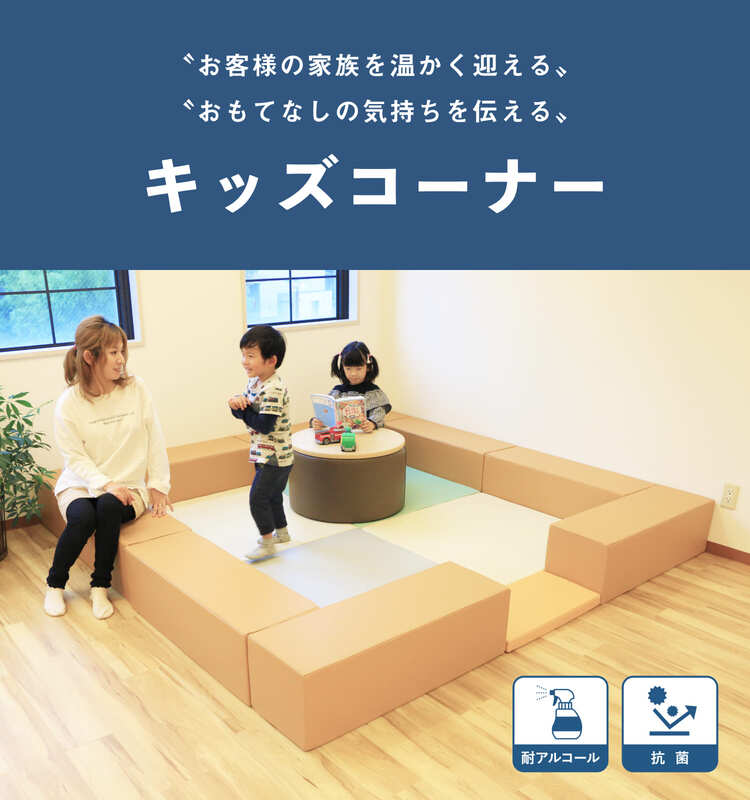 抗菌仕様の国産キッズコーナーを始め芝生仕様など様々なタイプをご用意してます