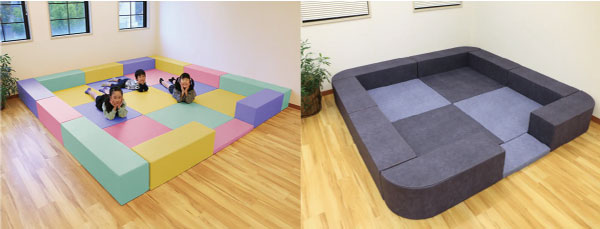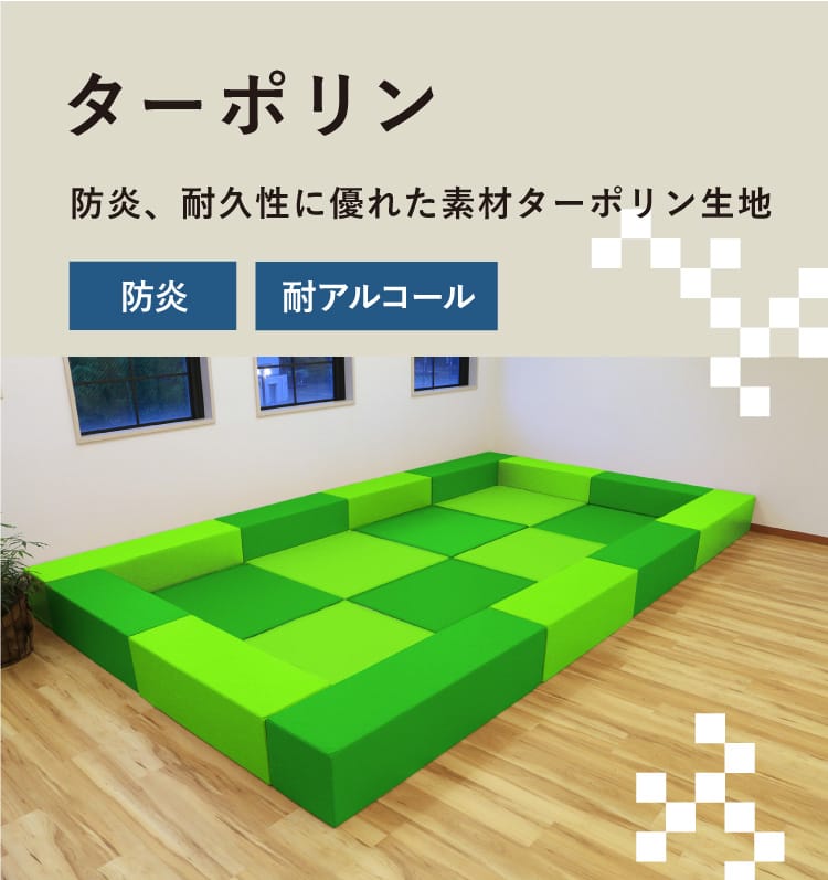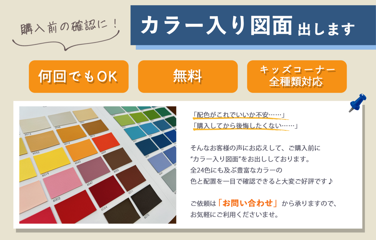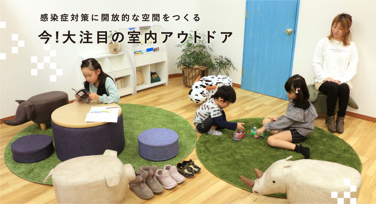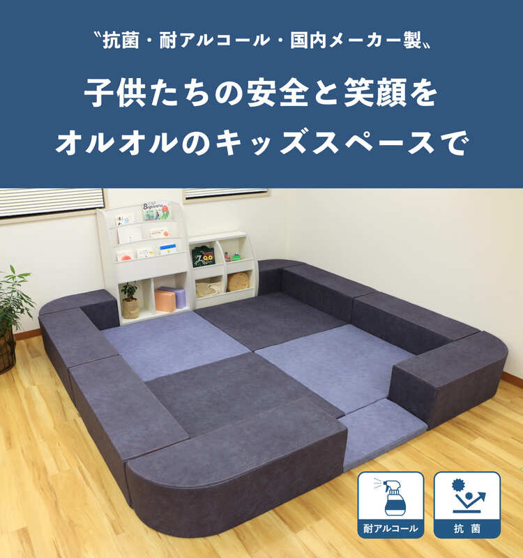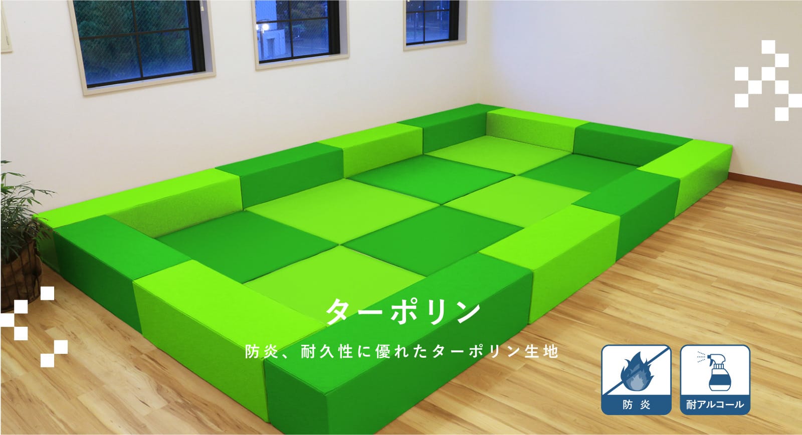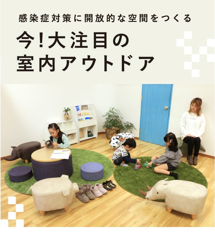 抗菌仕様の国産キッズコーナーを始め芝生仕様など様々なタイプをご用意してます