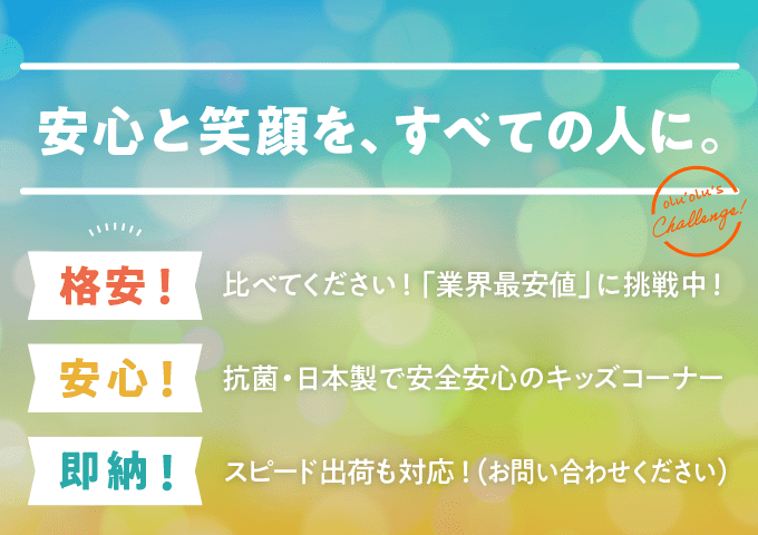 サイズや色、タイプなど様々なキッズコーナーをご用意しております。