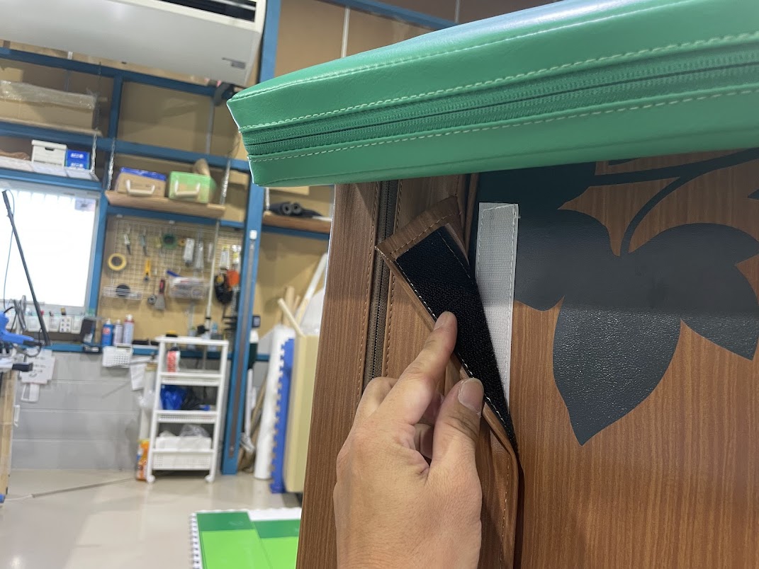 壁面マットに関して、ウレタンのみで製作しますと、およそ10キログラムになるところ、約半分の5キログラムになり、しかも強度はウレタンのみよりもはるかに芯があるものになっております。