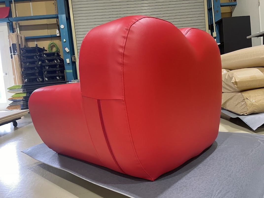 お客様オーダーメイドのりんご型ソファー、今回はオブジェとしての役割に焦点を当て、素材へのこだわりを改めてご紹介します。 このソファーは、座るというより、空間を彩るオブジェとしての役割を担うことを目的に制作されました。そのため、美しさ、耐久性、そしてオブジェとしての存在感を最大限に引き出すことを重視しました。
