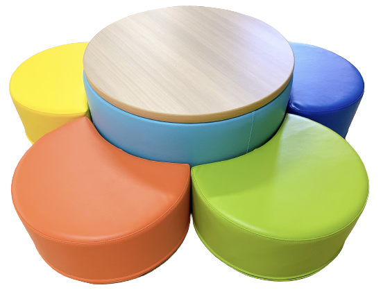 ※画像使用カラー テーブル(アクア / 底面:すべり止生地) スツール(マゼンタ・ブルー・ライム・オレンジ・イエロー)