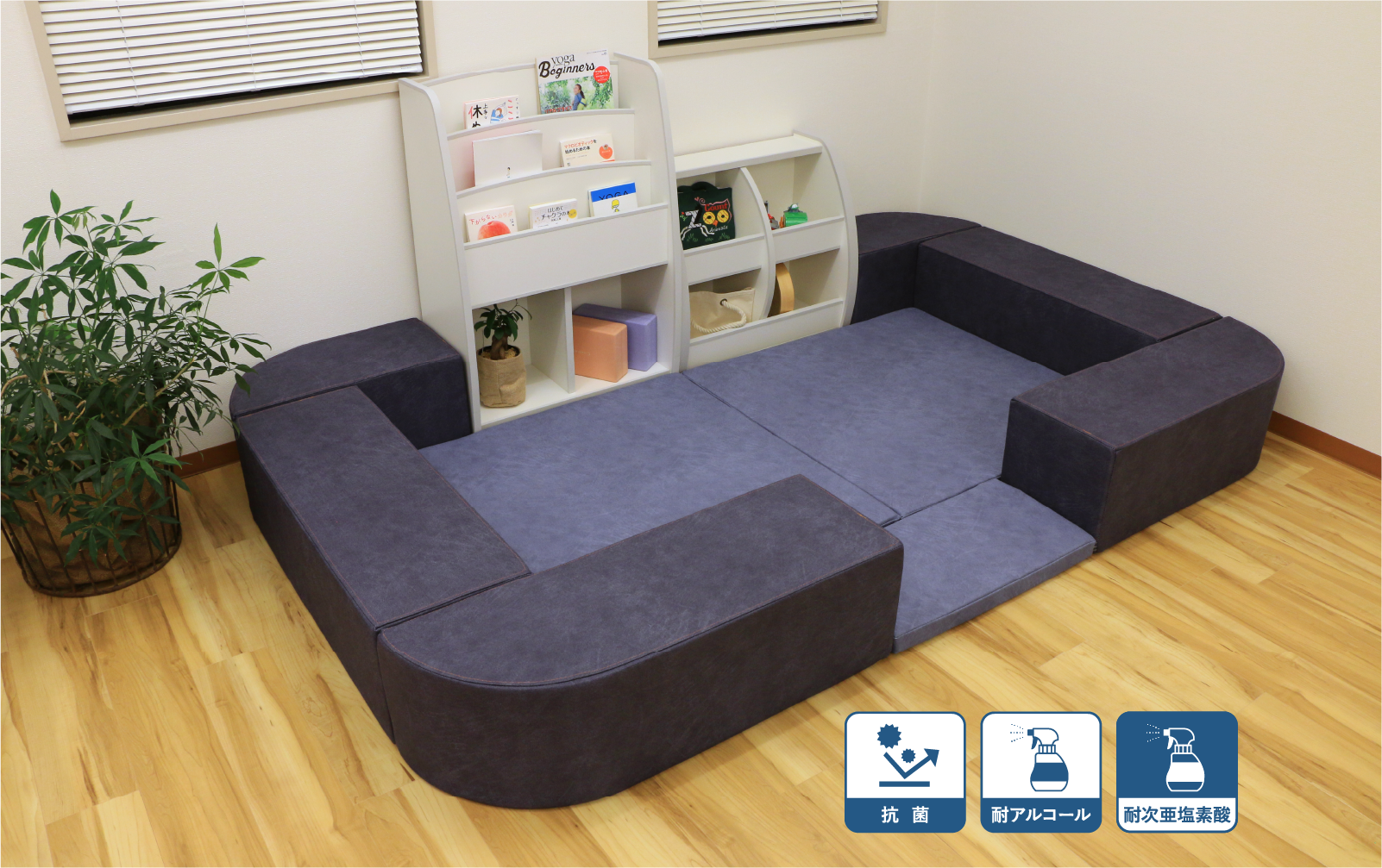 衝撃を吸収するのに優れた弾力性のある「高密度チップウレタン」を採用。大人が座っても、沈みすぎることなく、お子様が遊んでおられるのを安心して見守っていただくことができます。