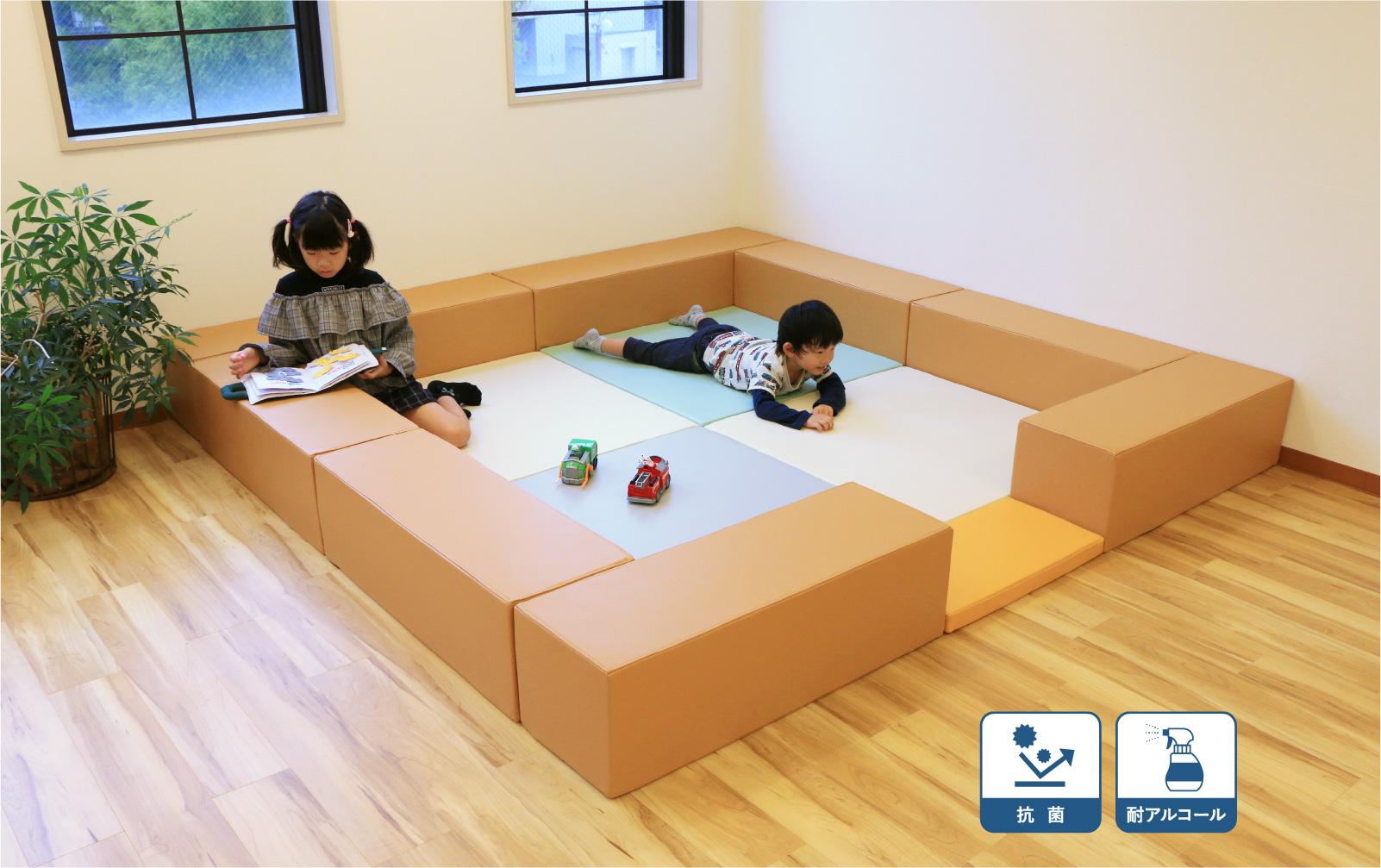 衝撃を吸収するのに優れた弾力性のある「高密度チップウレタン」を採用。大人が座っても、沈みすぎることなく、お子様が遊んでおられるのを安心して見守っていただくことができます。