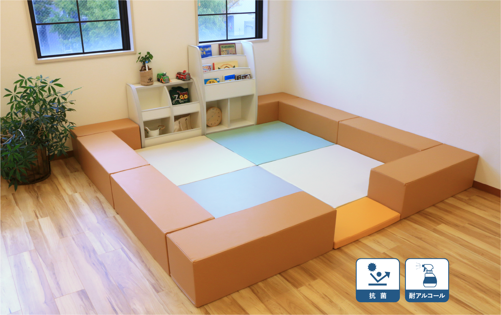 衝撃を吸収するのに優れた弾力性のある「高密度チップウレタン」を採用。大人が座っても、沈みすぎることなく、お子様が遊んでおられるのを安心して見守っていただくことができます。