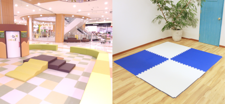 スポーツジムや防災アイテムとして等、多様なシーンにおすすめです。色の組み合わせやスペースに合わせたカットも自由自在。