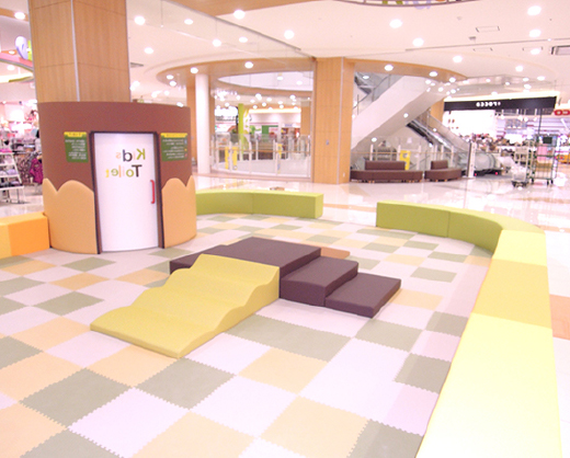環境に優しいEVA素材で安全で柔らかな優しいマット。介護施設にも最適な専用スロープ(別売)もございます。