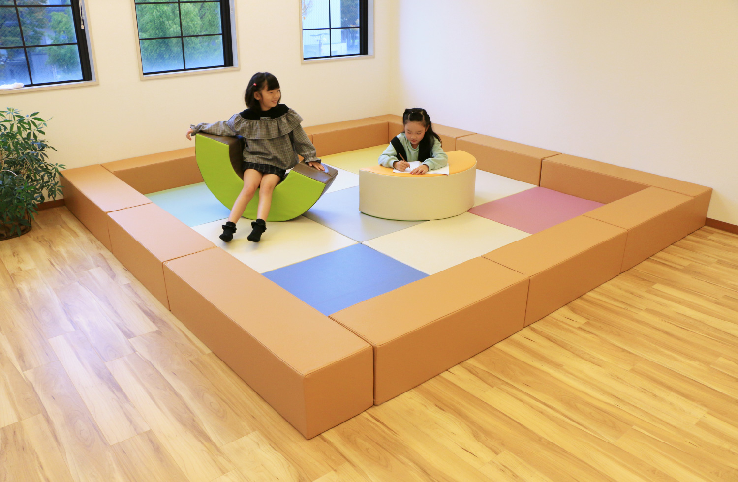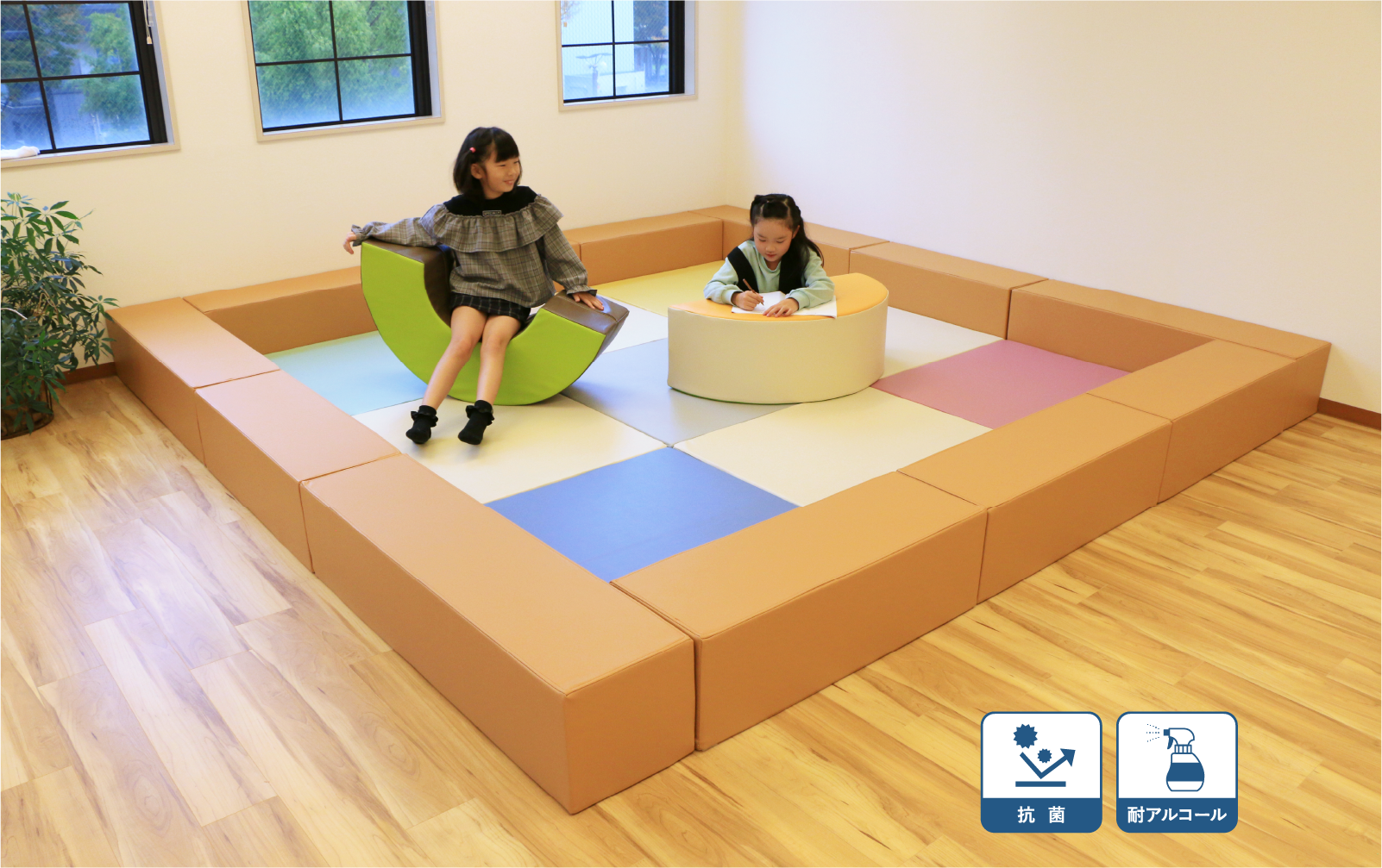衝撃を吸収するのに優れた弾力性のある「高密度チップウレタン」を採用。 大人が座っても、沈みすぎることなく、お子様が遊んでおられるのを安心して見守っていただくことができます。