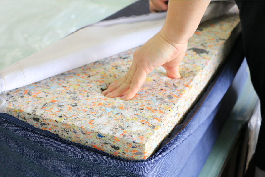 当社では、弾力性があり衝撃を吸収する緩衝性に優れた「チップウレタン」を採用しています。