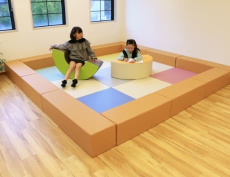 合成皮革は水や汚れに強く短期的な変色もしにくい素材です。水をはじくためシミや汚れが付くことが少ないため、お子様が遊ぶ場所として最適です。